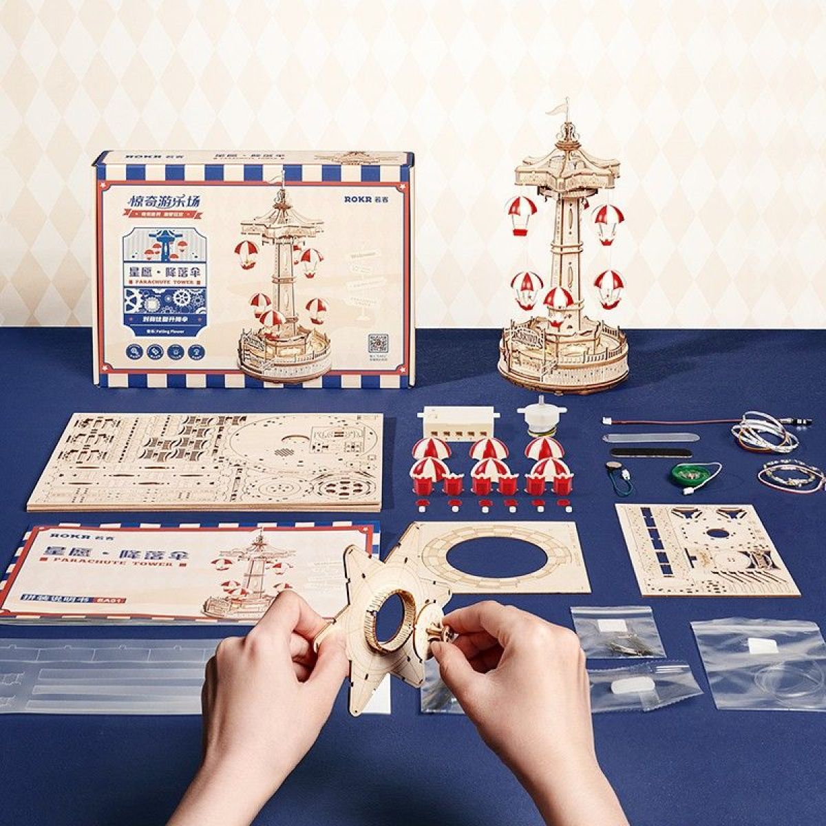 RoboTime 3D skládačka hrací skříňky Padáčkový kolotoč barevný