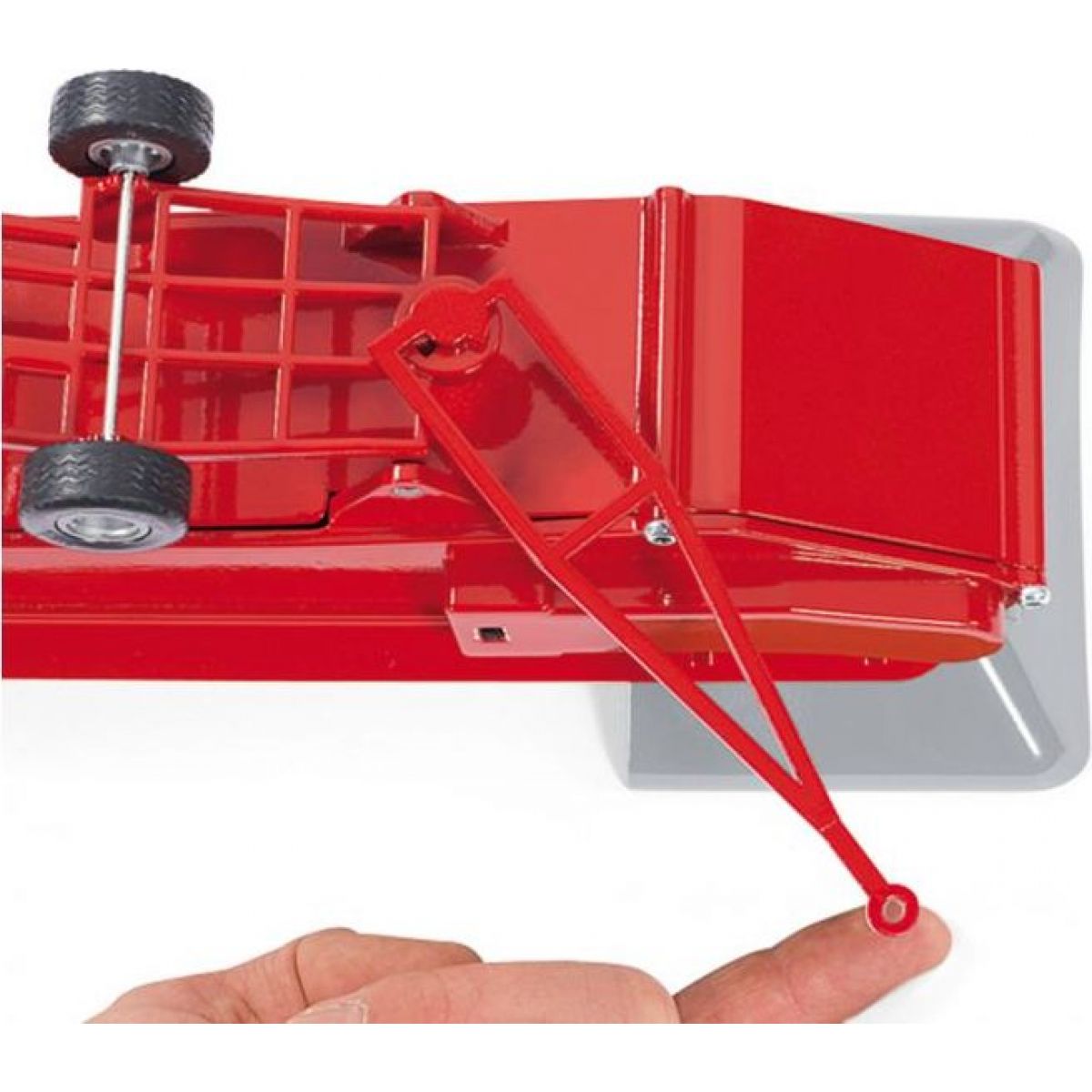 Tažná tyč dopravníku usnadňuje kombinaci s jakýmkoliv traktorem Siku při přesunu na nové pracovní místo.