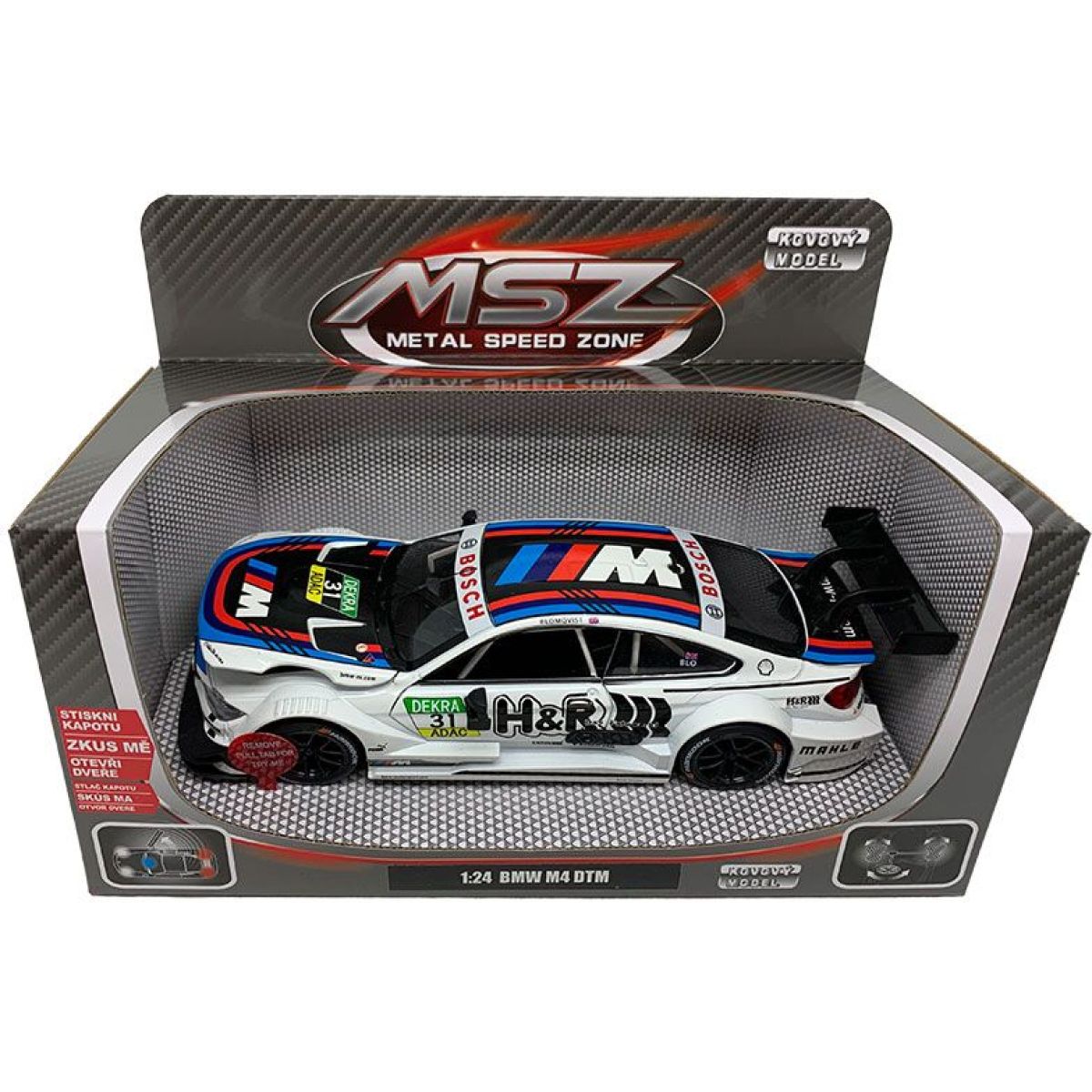 Malé ruce si zamilují model Sparkys 1:24 BMW M4! Tento kovový autíčko má otevírací dveře a navíc vydává světelné a zvukové efekty, které udělají radost každému dítěti od tří let. Díky bateriím LR44 (součást balení) je hra ještě zábavnější a věrnější opravdovému vozu. Je to ideální společník pro všechny malé závodníky i sběratele.