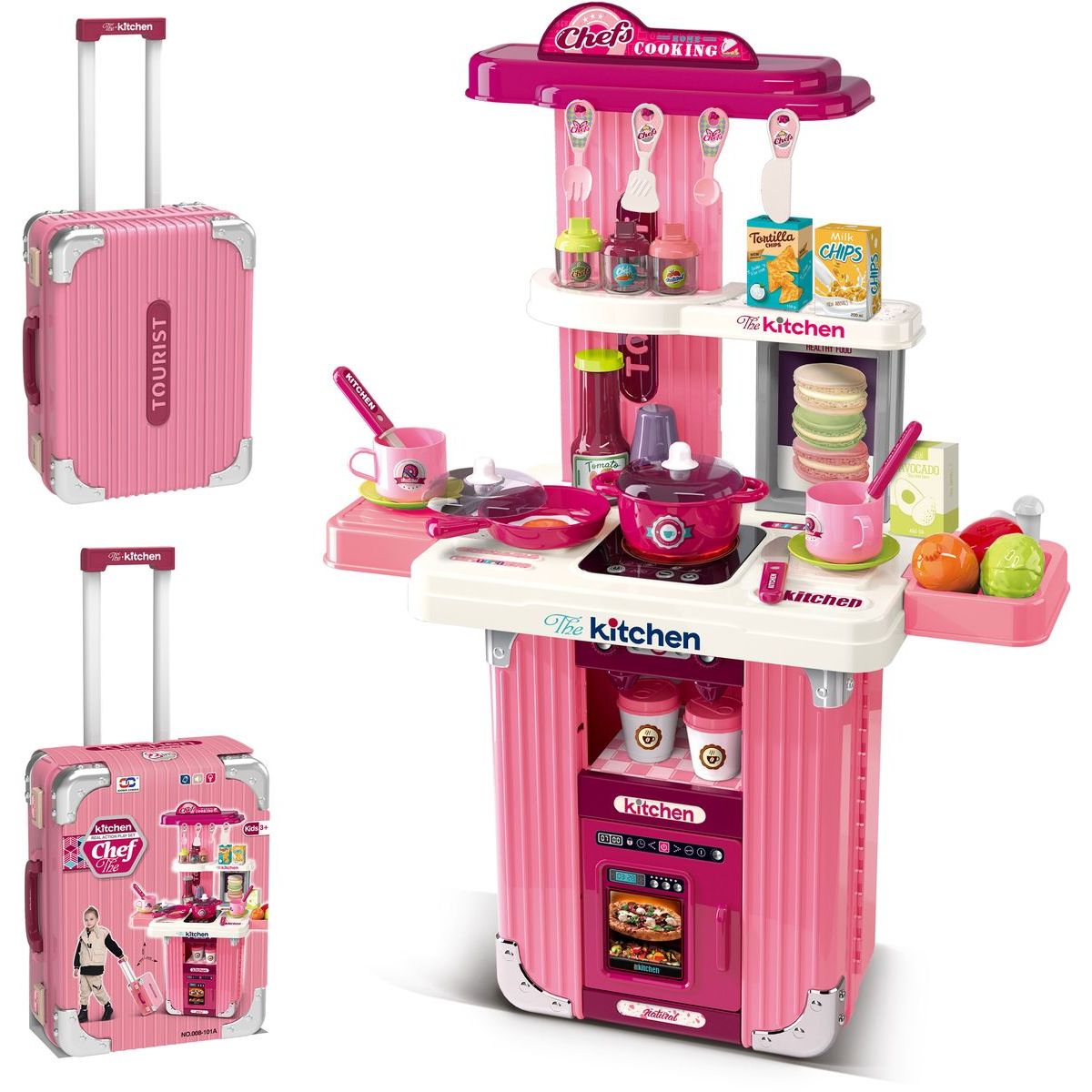 Sparkys 2v1 Kufr a kuchyň s příslušenstvím - růžová