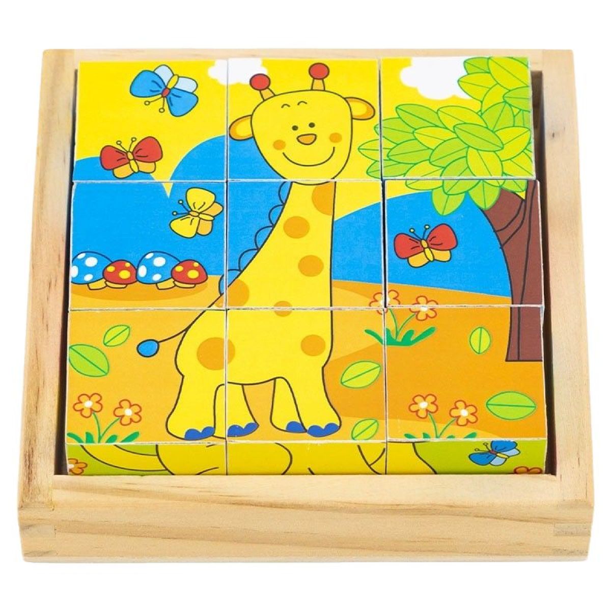 Tyto barevné dřevěné kostky ve tvaru žirafy jsou skvělou volbou pro malé děti od 3 let. Sada obsahuje 9 kusů různých tvarů a barev, které pomáhají rozvíjet jemnou motoriku a kreativitu. Díky motivu žirafy si děti snadno získají radost z hry a učení zároveň. Kostky jsou bezpečné, pevné a ideální jak do dětského pokoje, tak na cesty.