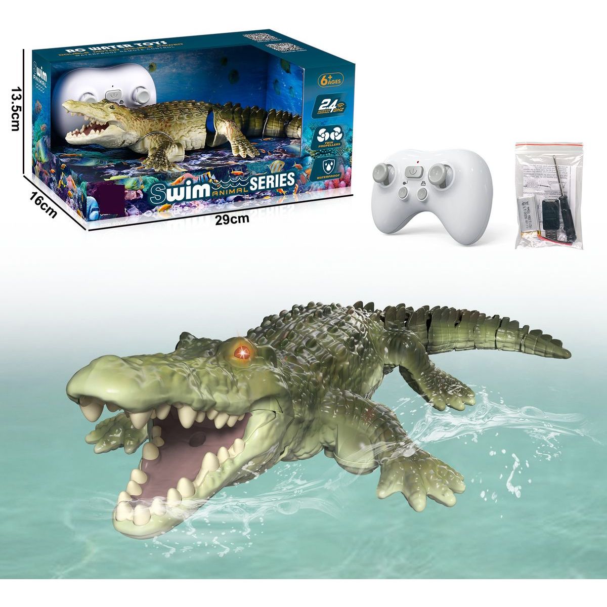 Připravte své děti na nezapomenutelné chvíle s dálkově ovládaným zeleným krokodýlem! Tento malý kamarád je vhodný pro děti od 3 let a díky zabudované block baterii ho mohou hned začít ovládat. Jeho realistický vzhled a jednoduché ovládání zajistí spoustu radosti při hraní doma i venku. S kompaktními rozměry je ideální jako dárek nebo zábava na cesty.
