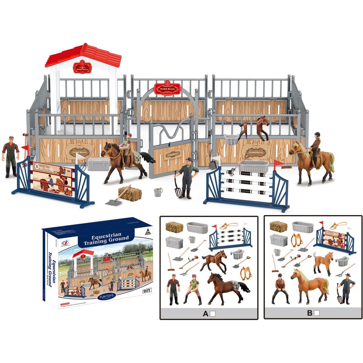Zahrajte si na farmu s jezdeckou dráhou Sparkys Zvířátka z farmy! Sada obsahuje krásné figurky koní a hříbat spolu s krmením, které dětem umožní zažít spoustu legrace a naučit se starat o zvířátka. Skvělá hračka pro děti od 3 let, která rozvíjí fantazii a nabízí hodiny hravého dobrodružství.