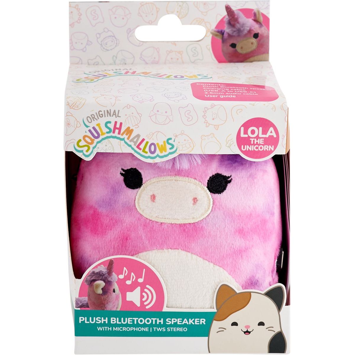 Squishmallows Bluetooth Speaker - Lola je měkoučký plyšák, který umí hrát hudbu! Díky němu si může celá rodina užít oblíbené písničky s krásným zvukem až na deset hodin bez nabíjení. Připojte ho jednoduše přes Bluetooth nebo pomocí kabelu a ovládejte hudbu snadno tlačítky přímo na reproduktoru. S vestavěným mikrofonem můžete také pohodlně přijímat hovory bez nutnosti sundat telefon. Lola je skvělý společník pro děti i dospělé, který rozzáří každý den svou roztomilostí i funkčností.