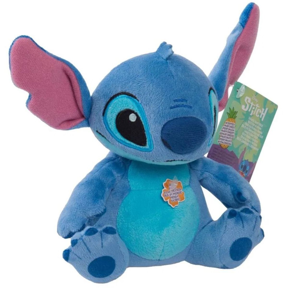 Zažijte radost s interaktivním plyšákem Stitch vysokým 15 cm. Tento měkký plyšák voní po ananasu a při stisknutí bříška vydává zvuky, které děti milují. Vhodný pro děti od 2 let, je to skvělý společník na hraní i mazlení. Věk: Vhodné pro děti od 3 let; Výška: 15 cm; Materiál: plyš; Zvuky a vůně pro zábavu.