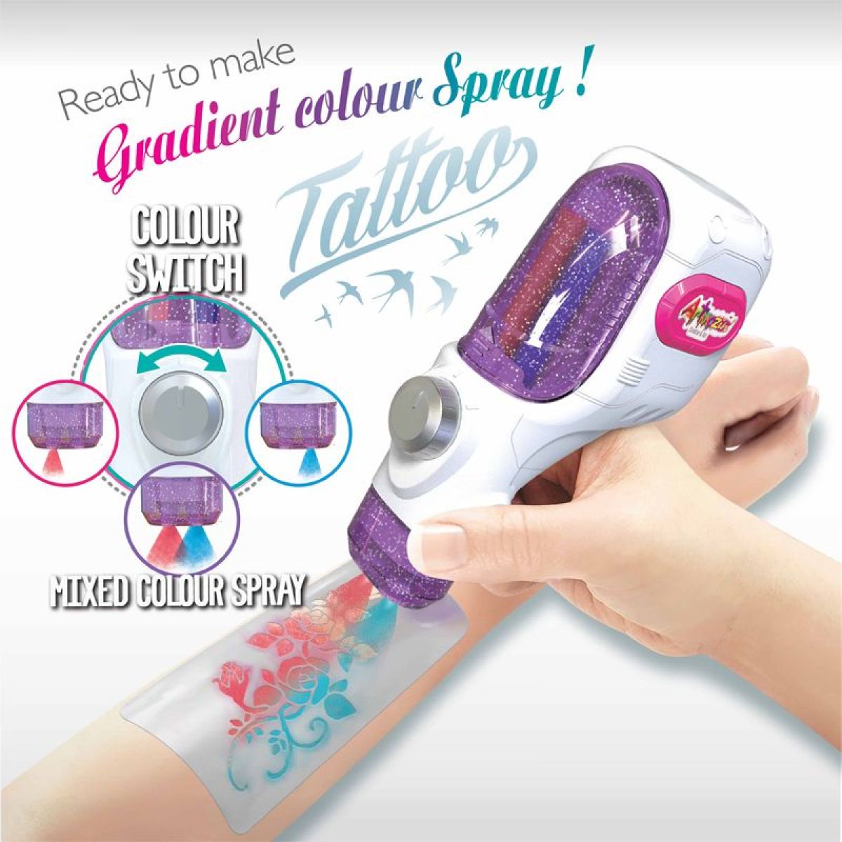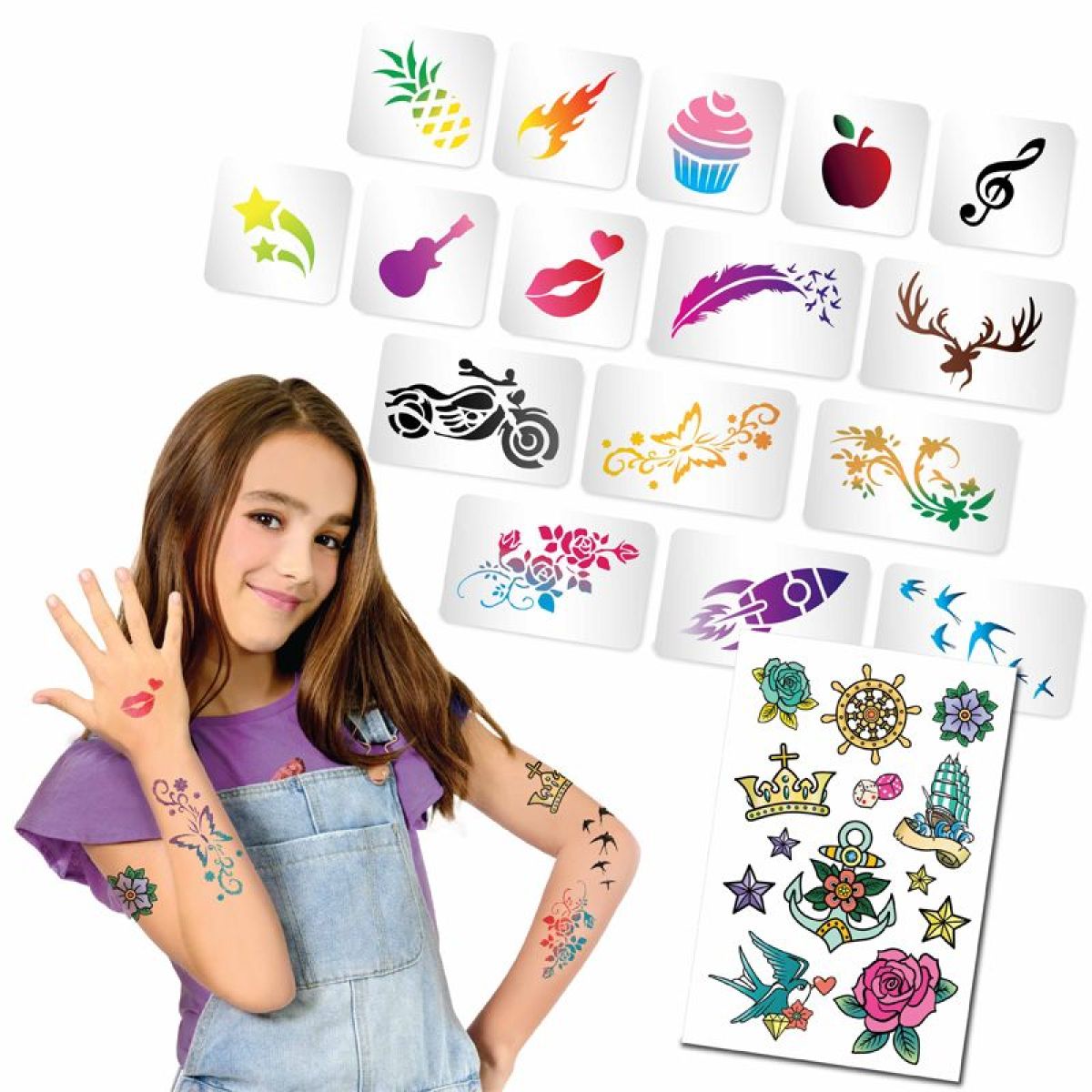 S airbrush tetovacím studiem Tasia si mohou děti od 3 let vyzkoušet tvorbu vlastních tetování plných barevných vzorů. Sada obsahuje 20 šablon a vše potřebné příslušenství k jednoduchému použití airbrush stroje. Kreativní malování na pokožku je bezpečné a zábavné – ideální pro malé umělce, kteří rádi tvoří něco výjimečného. Baterie typu AAA nejsou součástí balení.