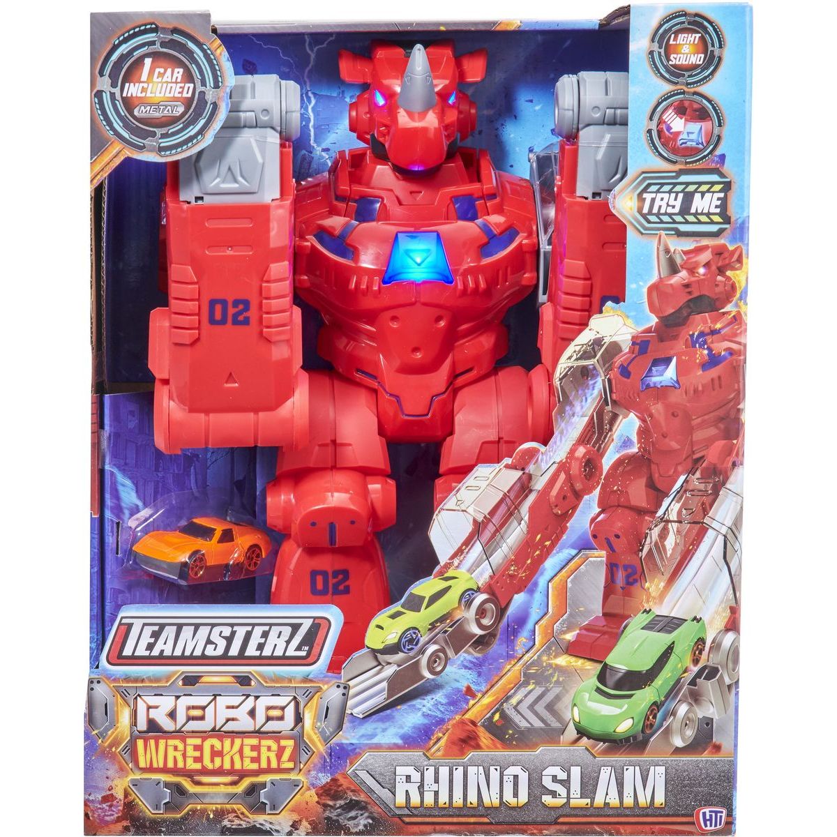 Teamsterz Robo Wreckerz Rhino Slam – robotické nosorožčí monstrum se světly, zvuky a vystřelovací drahou! Vrhni se do akce s robotickým nosorožcem Rhino Slam! Otevři ramena robota, nalož autíčka a stiskni jeho hlavu – vozidla se vystřelí oběma pažemi dolů a projedou dráhou s průhlednými panely, které umožňují sledovat rychlou jízdu. Rhino Slam vydává burácivé zvuky nosorožce i robota a jeho LED oči září připraveny k útoku! Funkce a vlastnosti: Otevírací ramena robota – nalož autíčka Stiskni hlavu nosorožce a vystřel auta oběma pažemi Ramena se přemění v závodní dráhu Průhledné panely pro vizuální efekt při jízdě Světelné efekty + LED oči Realistické zvuky nosorožce a robota Obsahuje 1 autíčko Street Machines Vhodné pro děti od 3 let Spoj sílu divočiny a technologií – Rhino Slam je připraven na akci!