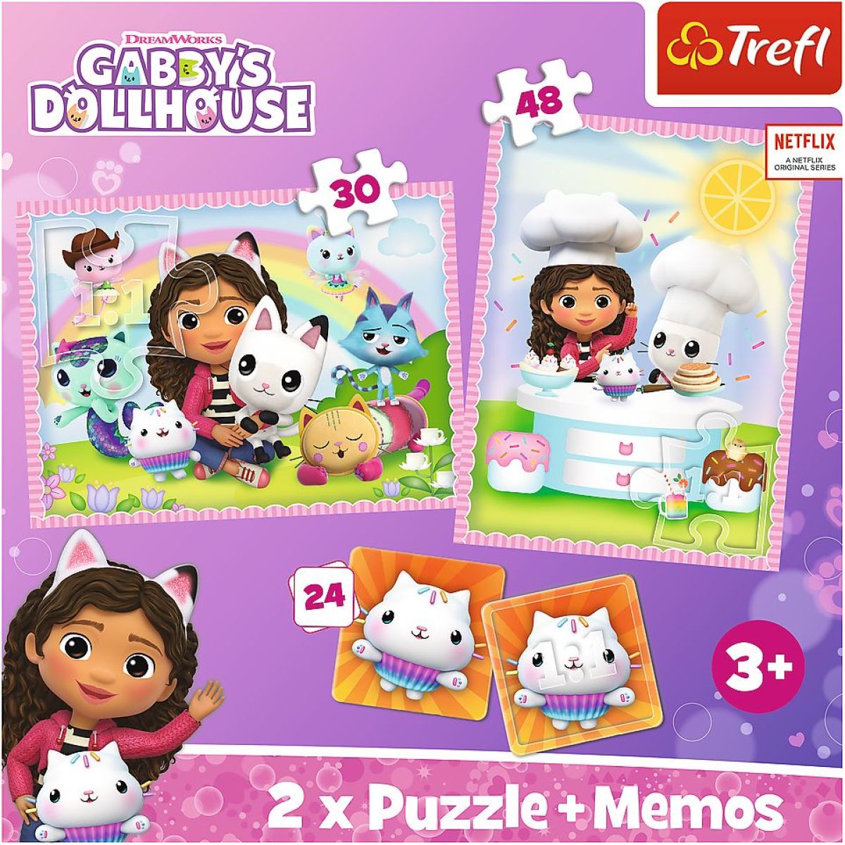 Obsahuje puzzle s 30 a 48 dílky a k tomu ještě zábavné pexeso. Vhodné pro děti od tří let, pomůže jim rozvíjet trpělivost i paměť při skládání i hraní her.