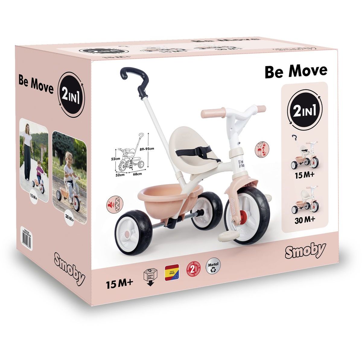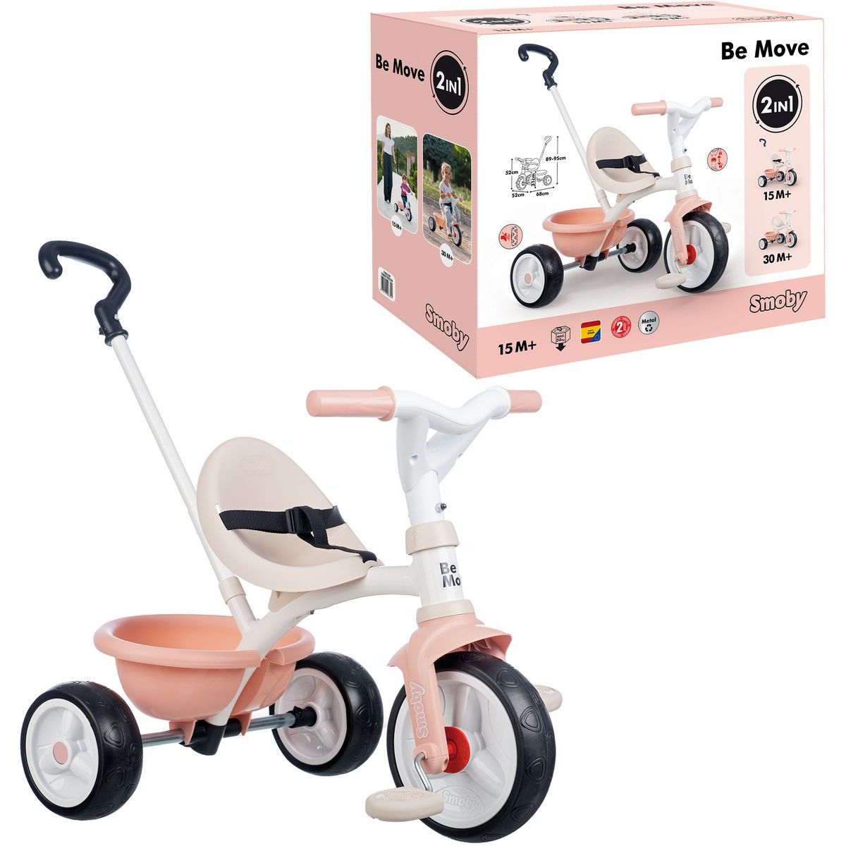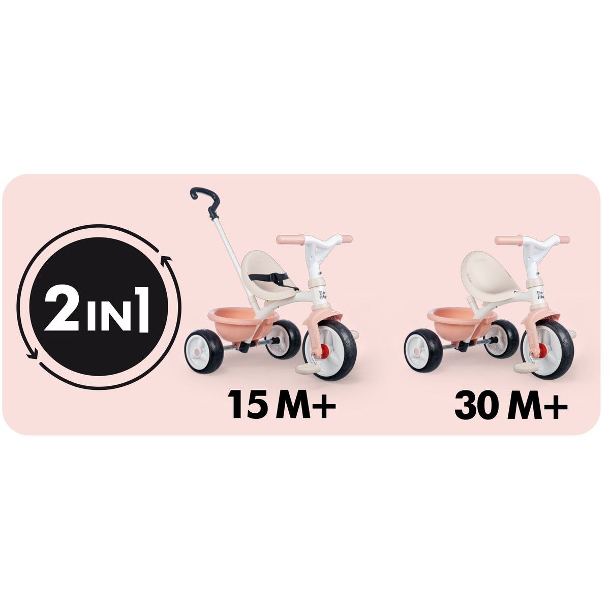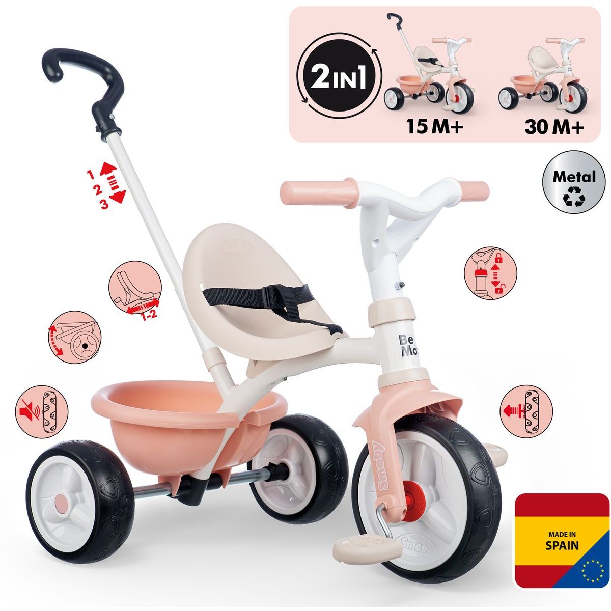 Šlapací tříkolka v růžové barvě zaujme nejen designem, ale i praktickými funkcemi. Díky pevné kovové konstrukci a bezpečnostní výbavě je ideální pro každodenní použití. Rodiče ocení výškově nastavitelnou tyč ve třech úrovních, ergonomické sedadlo se dvěma pozicemi a možnost blokace pedálů. Tříkolka je lehká, ale stabilní, doplněná tichými kolečky a výklopným zadním košíkem.