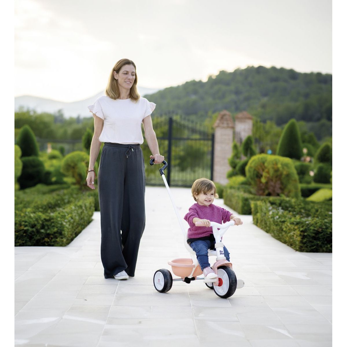 Dívčí tříkolka s vodicí tyčí – hravé a bezpečné cestování