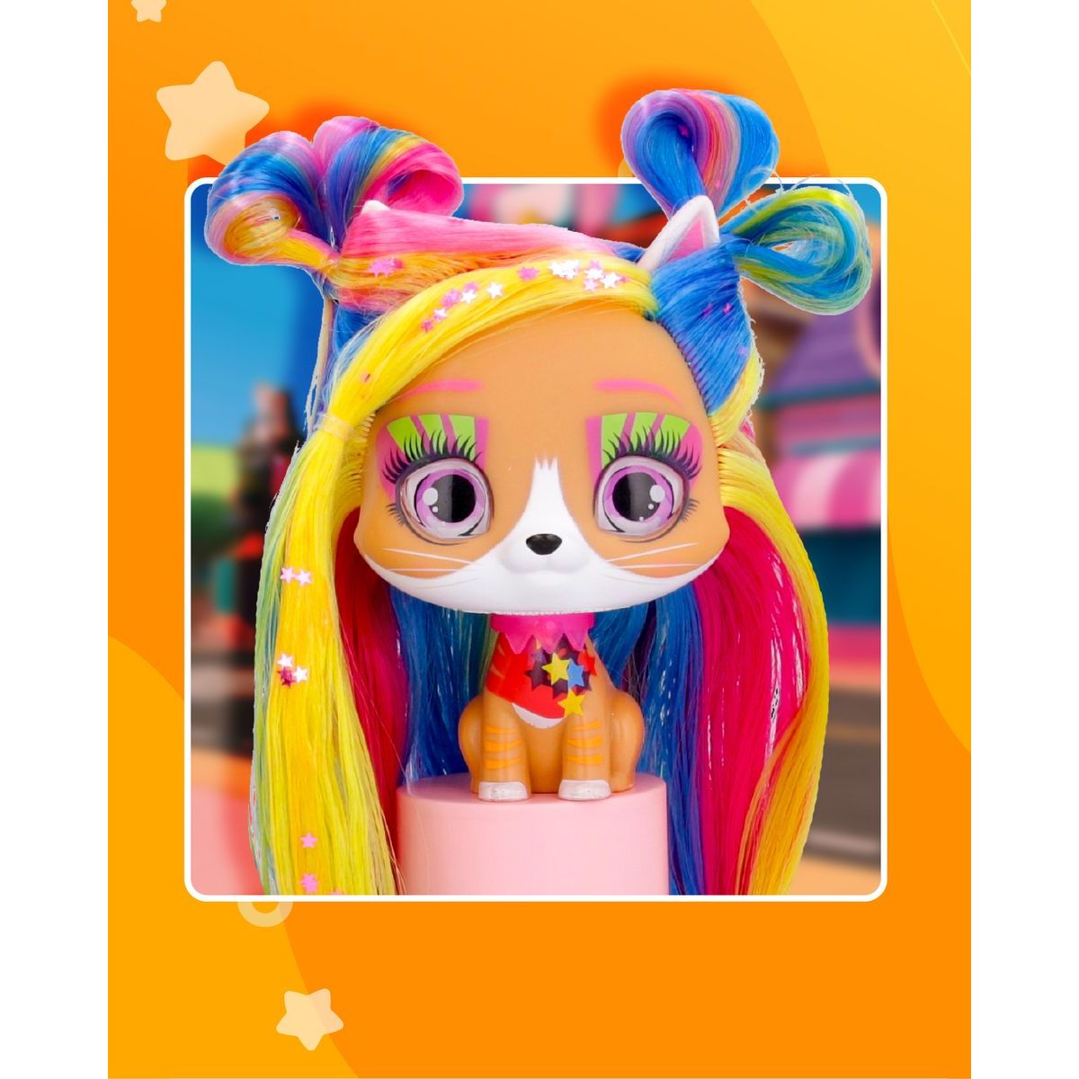 Poté co z obalu vyjmou kočičku, uvidí její dlouhé vlásky. Mohou se pustit do jejich rozčesávání a zdobení připravenými doplňky. Zajisté se bude vyjímat mezi sběratelskými mazlíčky, ukotvená na svém podstavci. Kočička je vyrobená podle animovaného seriálu VIP Pets na YouTube Kitoons.