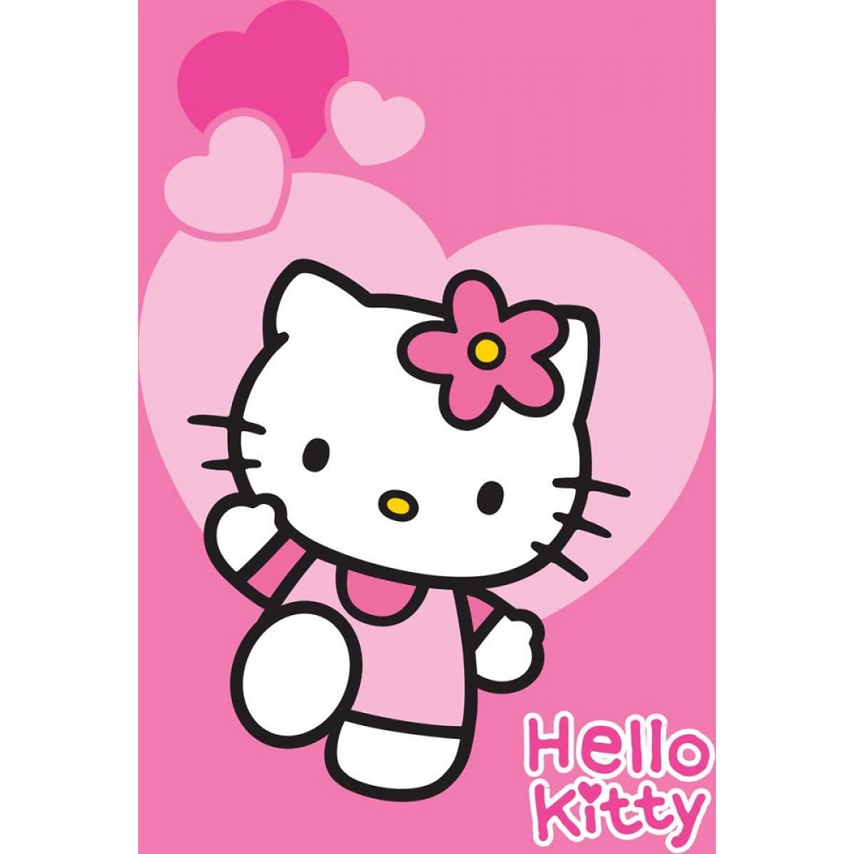 Motiv Hello Kity na růžovém podkladu je tentokrát zdobným povrchem klasického smyčkového koberce.