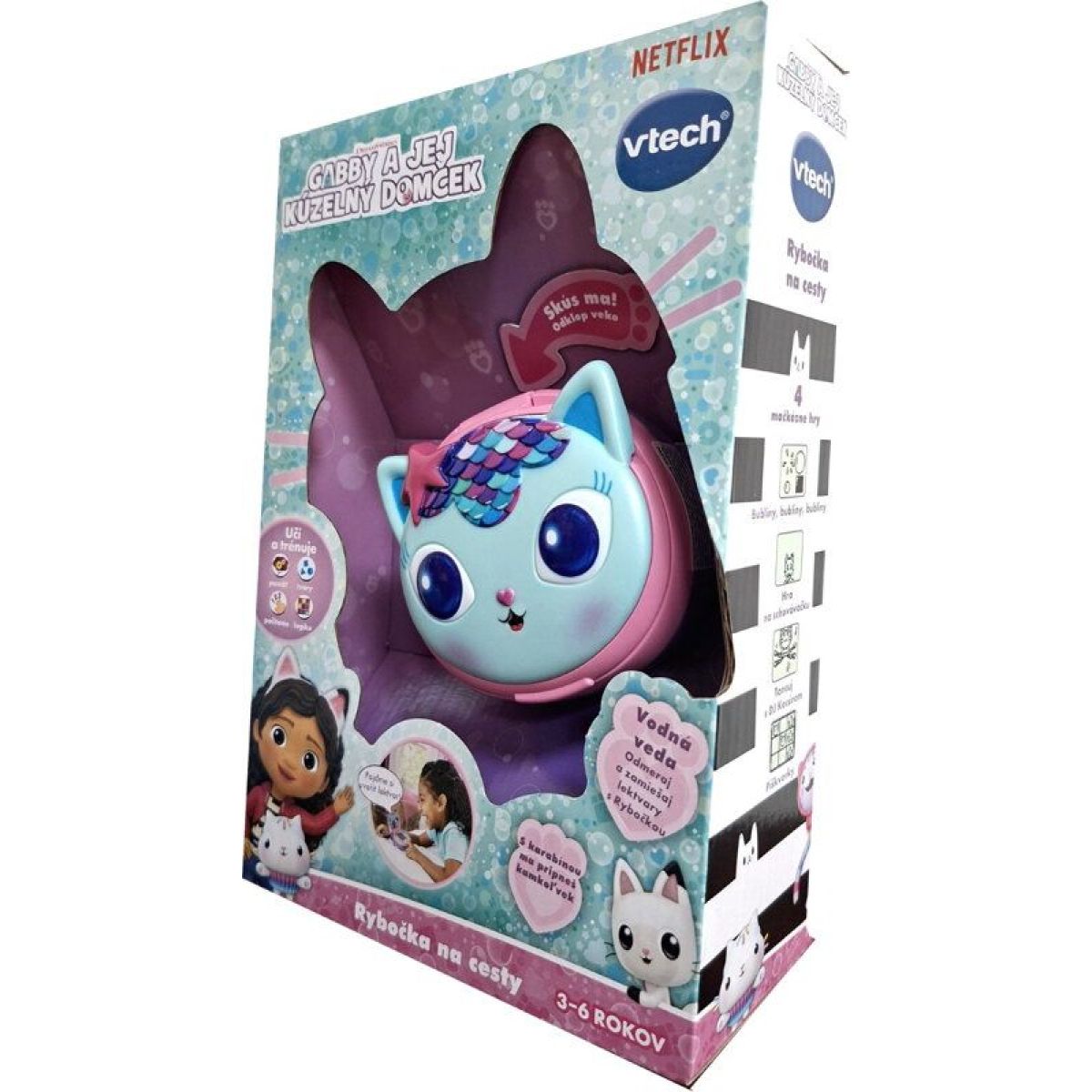 VTech Gábinin kouzelný domek – Rybočka na cesty CZ promění každou chvíli v malé dobrodružství plné objevování. Stačí vzít Rybočku do ruky a společně s Gábi a kočičí partou se ponořit do her, které učí tvary, písmenka i chytré myšlení – a to hravou a zábavnou formou.
