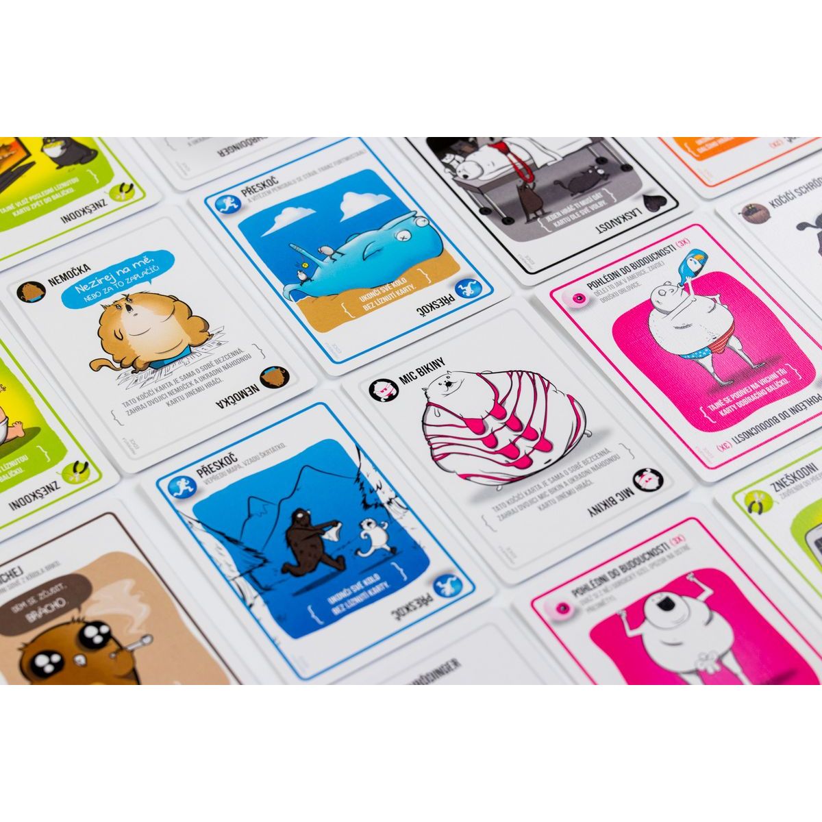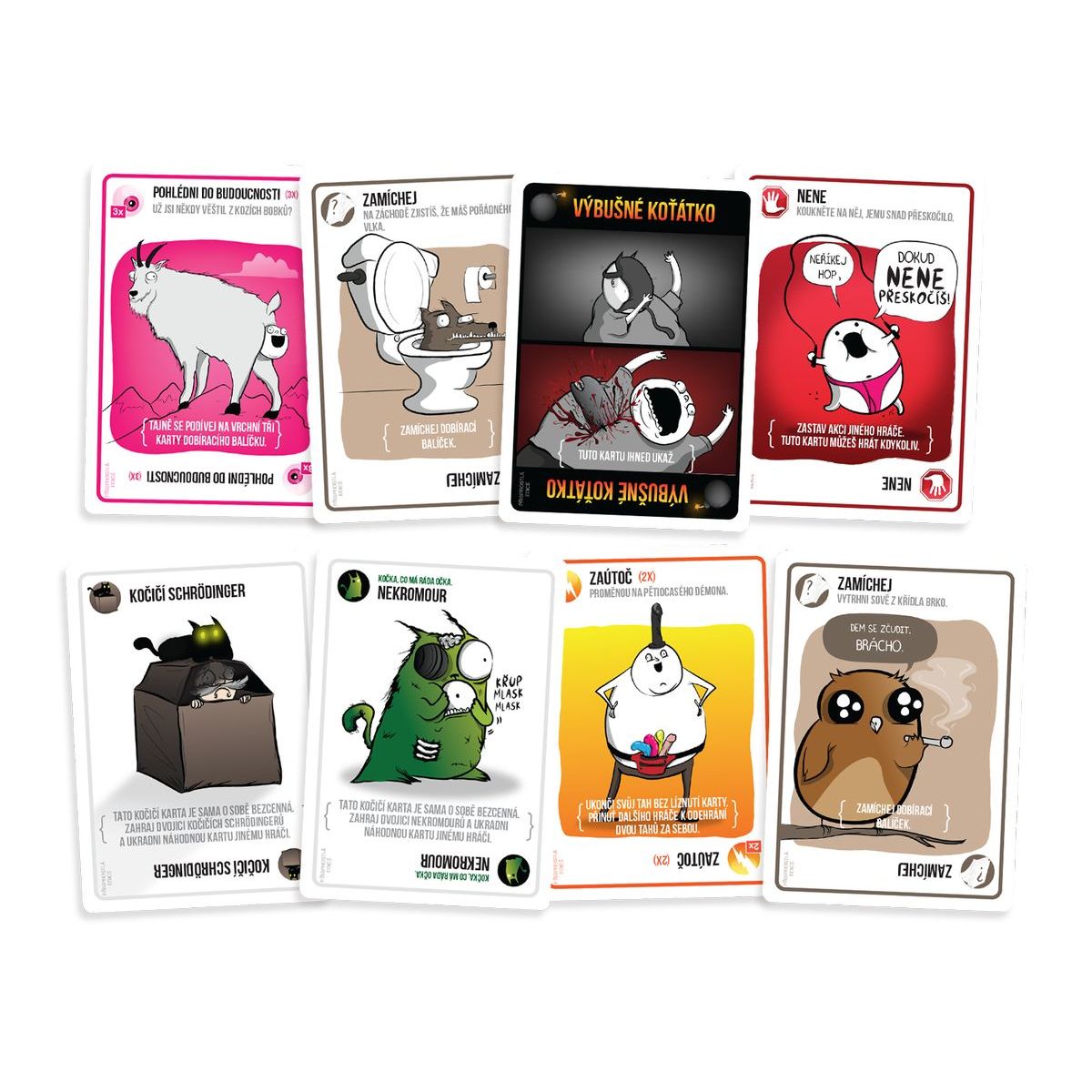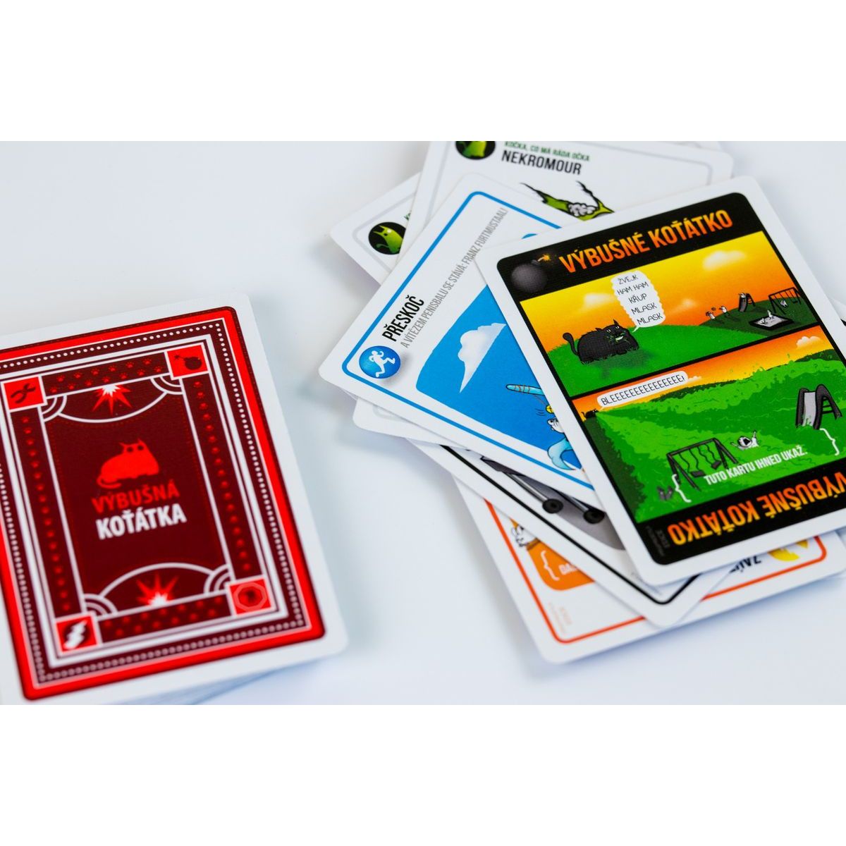 Karty jsou v této edici ozvláštněny neuctivým, absurdním a lehce nechutně-geniálním grafickým stylem, který prostě nemůže být součástí standardní hry. Balení obsahuje kompletní verzi Výbušných koťátek, 56 karet a česká pravidla. Přidáním dalšího balíčku může hrát až 9 hráčů – ideální pro bujaré večírky i noční herní maratony.