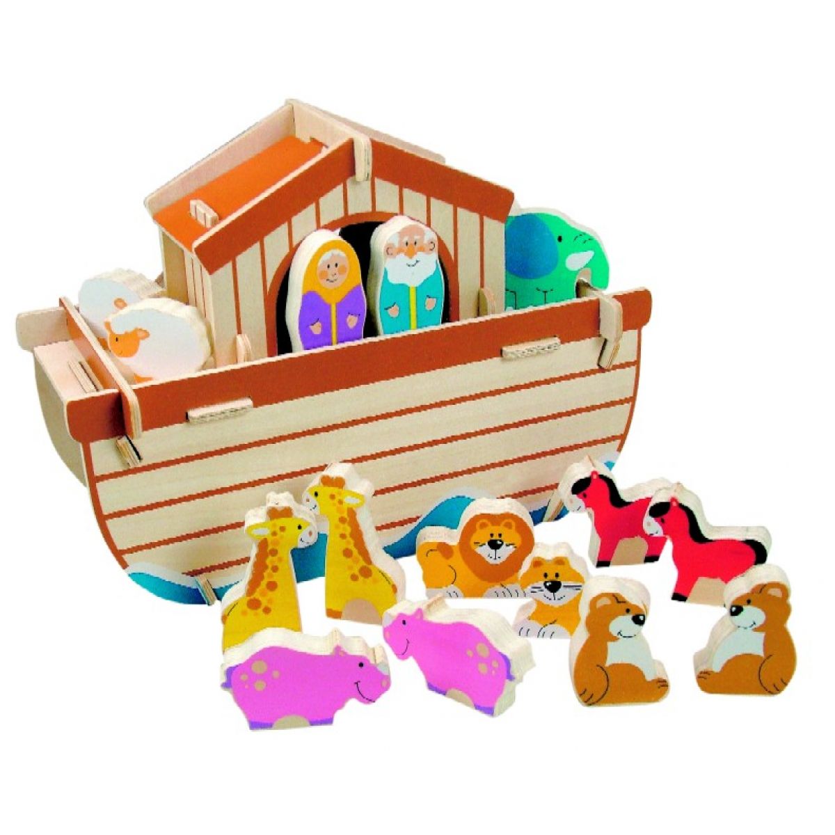 Dřevěná rozkládací loď z biblického příběhu. Celá je sestavena z dílů které se opět dají skládat dohromady. Obsahuje i zvířátka po dvojicích. Skládanka obsahuje 28 dílků.