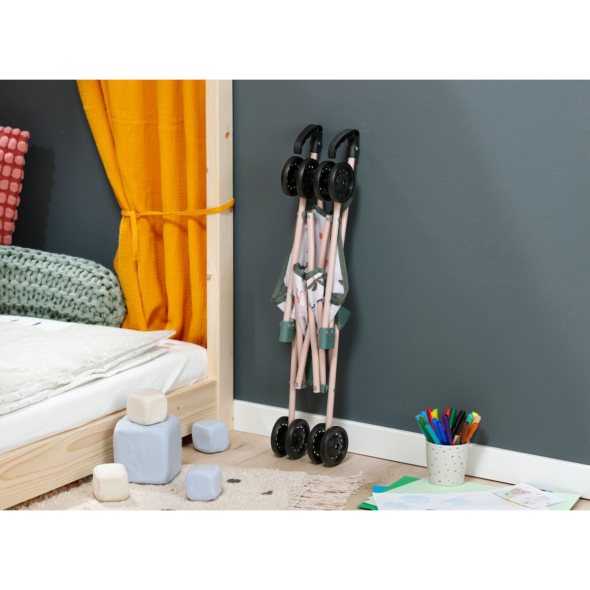 Po návratu domů se kočárek snadno složí a ve skříni nebo v pokojíčku zabere jen minimum místa. Tento sportovní kočárek přináší jednoduchost, lehkost a radost do každodenní hry.