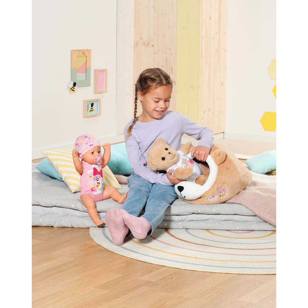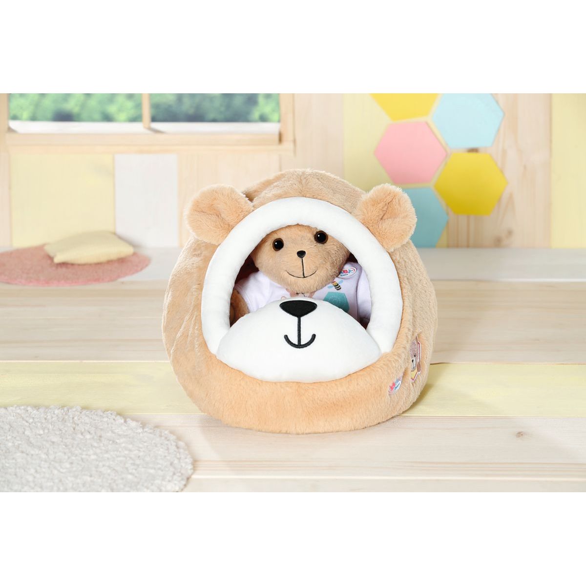 Plyšový pelíšek ve tvaru medvědí hlavy je určen pro medvídka Baby Born, který je nabízen jako samostatný produkt.