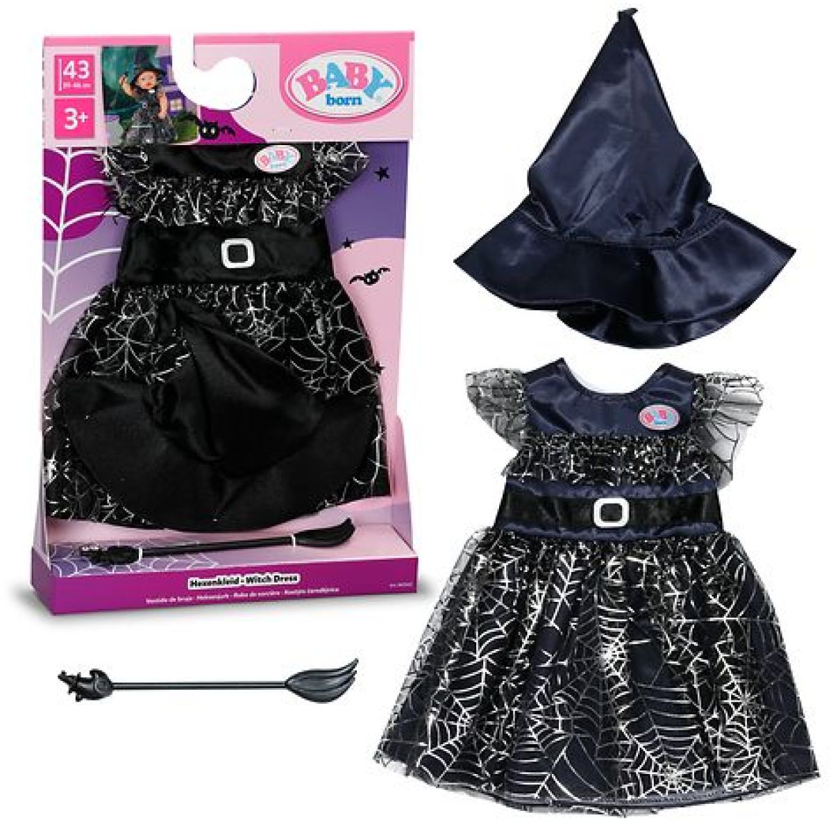 Kouzelný kostým, který promění každou panenku BABY born® v malou čarodějnici. Šaty s tematickým motivem zaujmou propracovanými detaily a podněcují děti k vymýšlení vlastních pohádkových příběhů. Díky praktickému střihu se obleček snadno obléká i svléká, takže si s ním děti poradí samy. Ideální doplněk pro rozšíření herního světa panenek BABY born® o velikosti 43 cm.